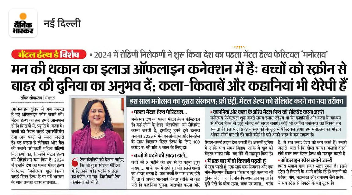 दुनिया में अब जरूरत है नए ऑफलाइन स्पेस बनाने की। मेंटल हेल्थ का हल हमारे आसपास ही है। किताबों में, प्रकृति में, कला में। |