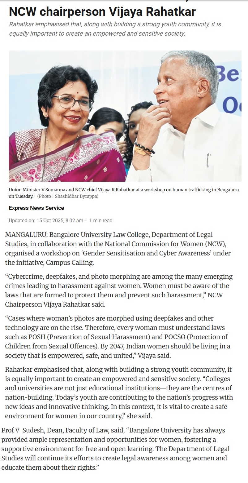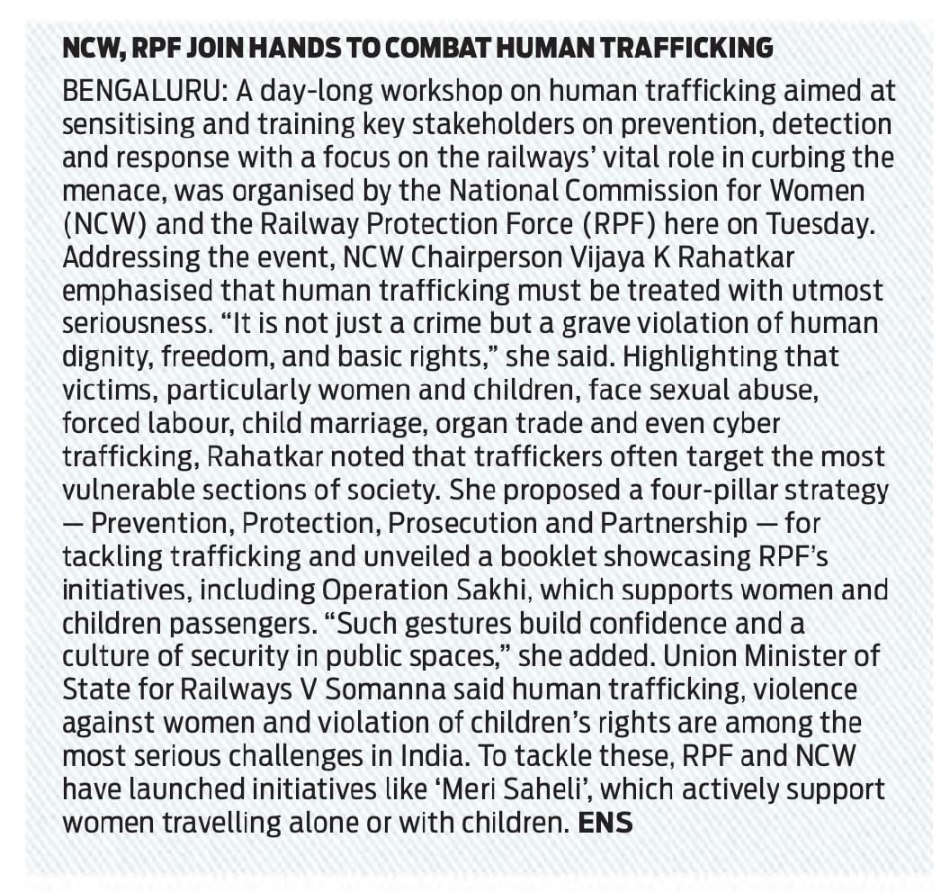 A workshop on Anti-Human Trafficking was organised by the National Commission for Women in collaboration with the Railway Protection Force in Bengaluru. |